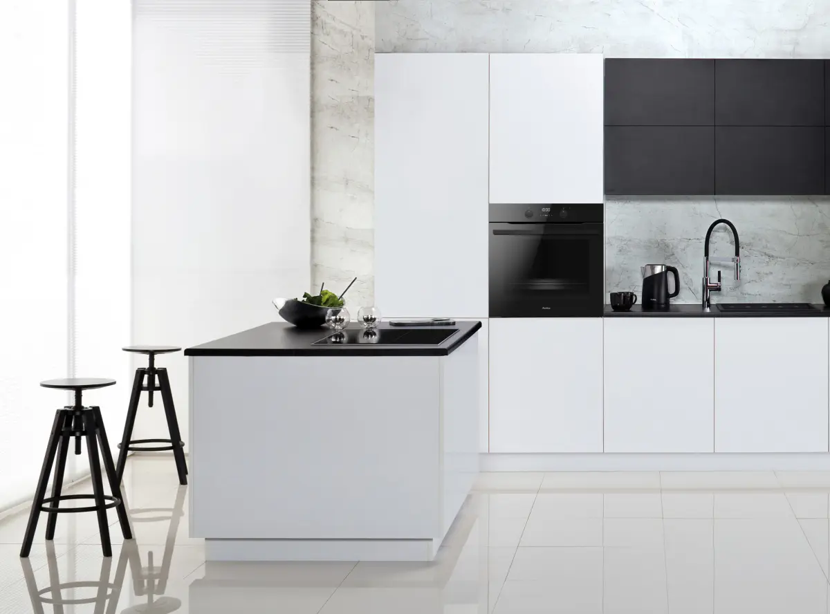 Trotz reduzierter Bauvorgaben bietet Amica vollen Komfort: Bis zu elf Backofenfunktionen, Steam-Clean-Reinigung und praktische Features wie die Brückenfunktion bei Induktionskochfeldern sorgen für modernes Kochen. Die Bedienung ist intuitiv: das Kochfeld über die Glasoberfläche, der Backofen über zwei dezente Frontknebel.