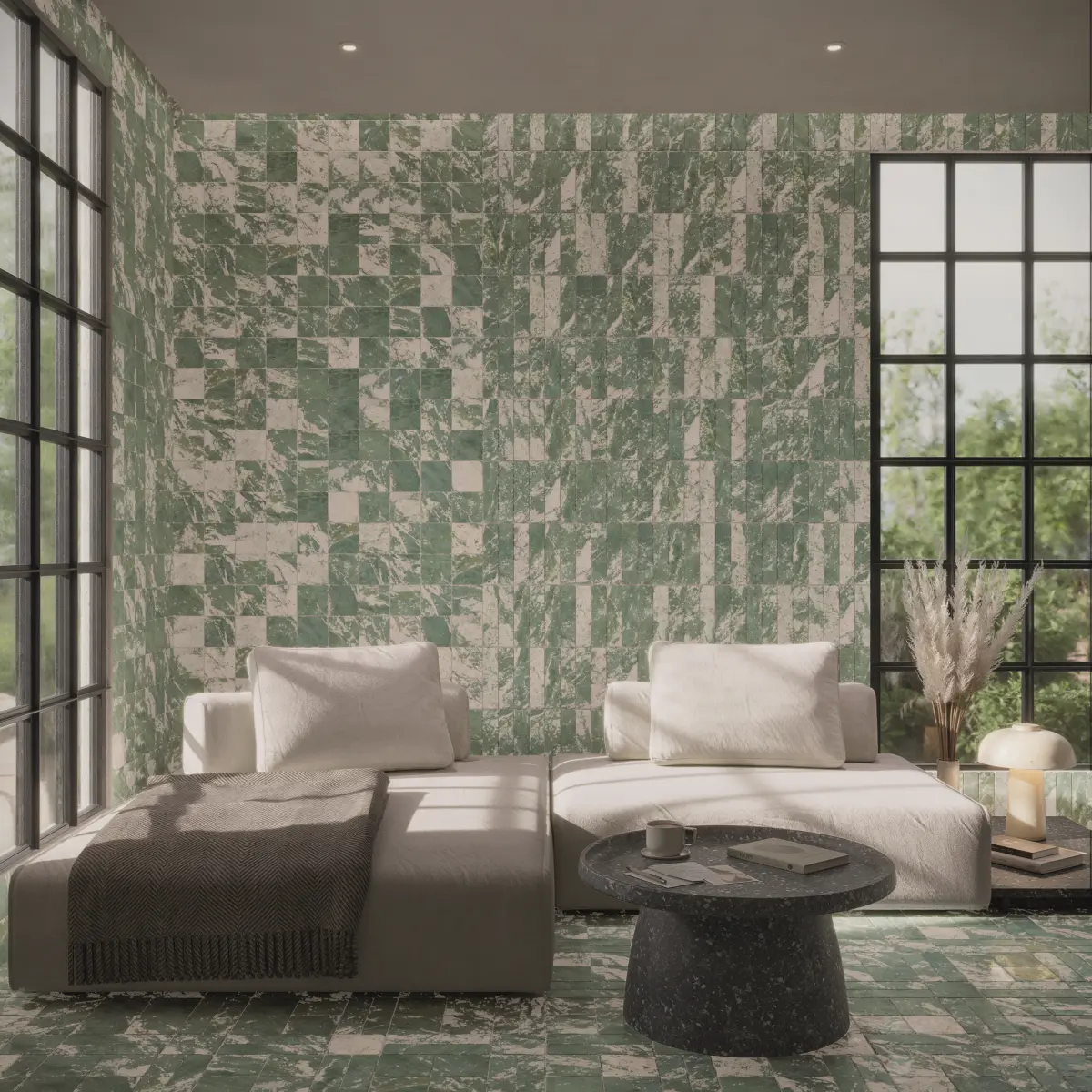 Vestige greift klassische Marmortypologien auf und übersetzt sie in eine weichere, emotionalere Formensprache. Matte Oberflächen, abgerundete Kanten und subtile Unregelmäßigkeiten erinnern an gealterte Steinbeläge. Die Formate 11 × 11 cm und 5,5 × 22 cm stehen zur Verfügung. Die Farbpalette reicht von Carrara, Arabescato, Brescia und Tivolino bis zu intensiveren Nuancen wie Calatorao, Sagano und Bluette, teilweise auch mit rutschhemmender Ausführung.